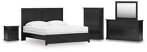King Panel Bed with Mirrored Dresser, Chest and Nightstand