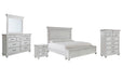 Details | B777B9: Includes king panel headboard, storage bench footboard and rails, Made with solid wood, veneers and engineered wood, Distressed whitewash finish, Foundation/box spring required, sold separately, Mattress available, sold separately, Assembly required, B777B1: Includes dresser and mirror, Made with solid wood, veneers and engineered wood, Distressed whitewash finish, Dark gray pewter-tone finished metal hardware, 7 smooth-gliding drawers, plus 2 small-scaled accessory drawers, Mirror attaches to back of dresser, Assembly required, B777-46: Made with solid wood, veneers and engineered wood, Distressed whitewash finish, Dark gray pewter-tone finished metal hardware, 7 smooth-gliding drawers, B777-93: Made with solid wood, veneers and engineered wood, Distressed whitewash finish, Dark gray pewter-tone finished metal hardware, 2 smooth-gliding drawers, plus 1 small-scale top accessory drawer, | |