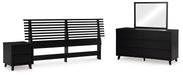 Details | B1013-158: Made with engineered wood (MDF/particleboard/plywood) and decorative laminate for the right balance of affordability and durability, Matte black finish with subtle replicated wood grain, Decorative laminate replicates natural or man-made material surfaces with consistent color, pattern and texture, ¼" bolts (not included) are needed to attach headboard to your existing bed frame, Minor assembly required, B1013B11: Includes dresser and mirror, Made with engineered wood (MDF/particleboard/plywood) and decorative laminate for the right balance of affordability and durability, Matte black finish with subtle replicated wood grain, Decorative laminate replicates natural or man-made material surfaces with consistent color, pattern and texture, 6 smooth-gliding drawers, Drawer interiors are lined with a faux linen laminate for a clean, finished look, Integrated drawer pulls, Framed front and pilasters, Mirror attaches to back of dresser; can also be mounted on wall horizontally or vertically, Safety is a top priority, clothing storage units are designed to meet the most current standard for stability, ASTM F 2057 (ASTM International), Drawers extend out to accommodate maximum access to drawer interior while maintaining safety, Minor assembly required, B1013-92: Made with engineered wood (MDF/particleboard/plywood) and decorative laminate for the right balance of affordability and durability, Matte black finish with subtle replicated wood grain, Decorative laminate replicates natural or man-made material surfaces with consistent color, pattern and texture, 2 smooth-gliding drawers, Drawer interiors are lined with a faux linen laminate for a clean, finished look, Integrated drawer pulls, Framed front and pilasters, USB and wireless charging options, Power cord included; UL Listed, Minor assembly required, | |