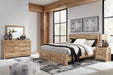 Details B1050B11: Includes king panel headboard, storage footboard, rails and roll slats, Made with engineered wood (MDF/particleboard/plywood) and decorative laminate for the right balance of affordability and durability, Golden rustic finish over replicated oak grain with authentic touch, Decorative laminate replicates natural or man-made material surfaces with consistent color, pattern and texture, Drawer interiors are lined with a faux linen laminate for a clean, finished look, Bed does not require additional foundation/box spring; accommodates most zero clearance adjustable bases with the addition of a bunkie board, Mattress available, sold separately, Assembly required, B1050B1: Includes dresser and mirror, Made with engineered wood (MDF/particleboard/plywood) and decorative laminate for the right balance of affordability and durability, Golden rustic finish over replicated oak grain with authentic touch, Decorative laminate replicates natural or man-made material surfaces with consistent color, pattern and texture, Handles in antiqued gunmetal finish, 6 smooth-gliding drawers, Drawer interiors are lined with a faux linen laminate for a clean, finished look, Framed front and pilasters, Mirror attaches to back of dresser; can also be mounted on wall horizontally or vertically, Safety is a top priority, clothing storage units are designed to meet the most current standard for stability, ASTM F 2057 (ASTM International), Drawers extend out to accommodate maximum access to drawer interior while maintaining safety, Assembly required,