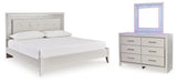 Zyniden King Upholstered Panel Bed with Mirrored Dresser