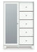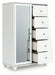 Details | Made with engineered wood (MDF/particleboard/plywood) and decorative laminate for the right balance of affordability and durability, Matte white finish, Decorative laminate replicates natural or man-made material surfaces with consistent color, pattern and texture, Crystal drawer knobs, 5 smooth-operating drawers, Drawer interiors are lined with a faux linen laminate for a clean, finished look, 3 shelves behind mirrored cabinet door; middle shelf is adjustable, Safety is a top priority, clothing storage units are designed to meet the most current standard for stability, ASTM F 2057 (ASTM International), Drawers extend out to accommodate maximum access to drawer interior while maintaining safety | |