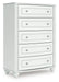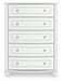 Details | Made with engineered wood (MDF/particleboard/plywood) and decorative laminate for the right balance of affordability and durability, Matte white finish, Decorative laminate replicates natural or man-made material surfaces with consistent color, pattern and texture, Crystal drawer knobs, 5 smooth-gliding drawers, Drawer interiors are lined with a faux linen laminate for a clean, finished look, Safety is a top priority, clothing storage units are designed to meet the most current standards for stability, ATM F 2057 (ASTM International), Drawers extend out to accommodate maximum access to drawer interior while maintaining safety, Minor assembly required | |