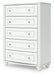 Fit for a princess. This chest of drawers’ crisp matte white finish pairs with charming elements like bun feet, crystal knobs and ornate beading—the perfect crowning touches for your girly girl. This spacious five-drawer piece is sure to make your little one feel like royalty.