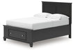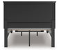 Details | Includes panel headboard, storage footboard with roll slats and rails , Made with hardwood solids, birch veneer and MDF substrate, Side rails feature laminated solid hardwood slat support rails (or LVL) with glued and screwed blocking for added strength, Black painted finish, Round metal knobs with satin nickel-tone finish, 2 smooth-gliding drawers in footboard, Tapered feet, Bed does not require additional foundation/box spring; accommodates most zero clearance adjustable bases with the addition of a bunkie board, Mattress available, sold separately, Assembly required | |