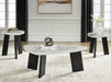 Details Includes coffee table and 2 end tables, Made with decorative laminate and MDF substrate, Tabletop with replicated Carrara marble laminate, Legs with replicated black wood grain, Assembly required