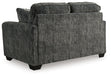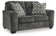 This loveseat speaks to those drawn to fresh, contemporary style with richly neutral appeal. Subtle and sophisticated, the plush upholstery and dark tri-block legs are a natural complement for so many color schemes. Two accent pillows make the seating even more welcoming. Curling up on this loveseat to enjoy a night in is never out of the question.