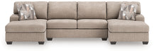 Details | Includes 3 pieces: left-arm facing corner chaise, armless loveseat and right-arm facing corner chaise, "Left-arm" and "right-arm" describe the position of the arm when you face the piece , Corner-blocked frame , Attached back and loose seat cushions, High-quality foam cushions wrapped in poly fiber, Accent pillows included, Pillows with soft polyfill, Polyester upholstery, Exposed feet with faux wood finish , Platform foundation system resists sagging 3x better than spring system after 20,000 testing cycles by providing more even support, Smooth platform foundation maintains tight, wrinkle-free look without dips or sags that can occur over time with sinuous spring foundations | |