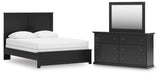 Details | B138B53: Includes panel headboard/footboard and rails, Made with engineered wood (MDF/particleboard/plywood) and decorative laminate for the right balance of affordability and durability, Solid black finish, Decorative laminate replicates natural or man-made material surfaces with consistent color, pattern and texture, Foundation/box spring required, sold separately, Mattress available, sold separately, Assembly required, B138B50: Includes dresser and mirror, Made with engineered wood (MDF/particleboard/plywood) and decorative laminate for the right balance of affordability and durability , Solid black finish, Decorative laminate replicates natural or man-made material surfaces with consistent color, pattern and texture, Pewter-tone knobs, 6 smooth-gliding drawers, Mirror attaches to back of dresser; can also be mounted on wall horizontally or vertically, Minor assembly required, | |