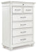 Details | B777B4: Includes queen upholstered headboard, panel footboard and rails, Made with solid wood, veneers and engineered wood, Distressed whitewash finish, Button tufted fabric upholstery, Nailhead trim, Foundation/box spring required, sold separately, Mattress available, sold separately, Assembly required, B777B1: Includes dresser and mirror, Made with solid wood, veneers and engineered wood, Distressed whitewash finish, Dark gray pewter-tone finished metal hardware, 7 smooth-gliding drawers, plus 2 small-scaled accessory drawers, Mirror attaches to back of dresser, Assembly required, B777-46: Made with solid wood, veneers and engineered wood, Distressed whitewash finish, Dark gray pewter-tone finished metal hardware, 7 smooth-gliding drawers, | |