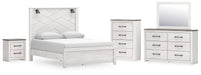 Gerridan Queen Panel Bed with Mirrored Dresser, Chest and Nightstand