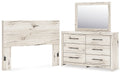 Details | B2310-57: Made with engineered wood (MDF/particleboard/plywood) and decorative laminate for the right balance of affordability and durability, Rustic white finish over replicated reclaimed oak grain with authentic touch, Decorative laminate replicates natural or man-made material surfaces with consistent color, pattern and texture, ¼" bolts (not included) are needed to attach headboard to your existing bed frame, Minor assembly required, B2310B1: Made with engineered wood (MDF/particleboard/plywood) and decorative laminate for the right balance of affordability and durability, Rustic white finish over replicated reclaimed oak grain with authentic touch, Decorative laminate replicates natural or man-made material surfaces with consistent color, pattern and texture, Handles with dark pewter-tone finish, 6 smooth-gliding drawers, Drawer interiors are lined with a faux linen laminate for a clean, finished look, Framed front and pilasters, Safety is a top priority, clothing storage units are designed to meet the most current standard for stability, ASTM F 2057 (ASTM International), Drawers extend out to accommodate maximum access to drawer interior while maintaining safety, Mirror attaches to back of dresser; can also be mounted on wall horizontally or vertically , Minor assembly required, | |