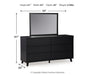 Details | B1013-57: Made with engineered wood (MDF/particleboard/plywood) and decorative laminate for the right balance of affordability and durability, Matte black finish with subtle replicated wood grain, Decorative laminate replicates natural or man-made material surfaces with consistent color, pattern and texture, ¼" bolts (not included) are needed to attach headboard to your existing bed frame, Minor assembly required, B1013B11: Includes dresser and mirror, Made with engineered wood (MDF/particleboard/plywood) and decorative laminate for the right balance of affordability and durability, Matte black finish with subtle replicated wood grain, Decorative laminate replicates natural or man-made material surfaces with consistent color, pattern and texture, 6 smooth-gliding drawers, Drawer interiors are lined with a faux linen laminate for a clean, finished look, Integrated drawer pulls, Framed front and pilasters, Mirror attaches to back of dresser; can also be mounted on wall horizontally or vertically, Safety is a top priority, clothing storage units are designed to meet the most current standard for stability, ASTM F 2057 (ASTM International), Drawers extend out to accommodate maximum access to drawer interior while maintaining safety, Minor assembly required, | |
