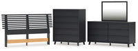 Details B1013-157: Made with engineered wood (MDF/particleboard/plywood) and decorative laminate for the right balance of affordability and durability, Matte black finish with subtle replicated wood grain, Decorative laminate replicates natural or man-made material surfaces with consistent color, pattern and texture, ¼" bolts (not included) are needed to attach headboard to your existing bed frame, Minor assembly required, B1013B11: Includes dresser and mirror, Made with engineered wood (MDF/particleboard/plywood) and decorative laminate for the right balance of affordability and durability, Matte black finish with subtle replicated wood grain, Decorative laminate replicates natural or man-made material surfaces with consistent color, pattern and texture, 6 smooth-gliding drawers, Drawer interiors are lined with a faux linen laminate for a clean, finished look, Integrated drawer pulls, Framed front and pilasters, Mirror attaches to back of dresser; can also be mounted on wall horizontally or vertically, Safety is a top priority, clothing storage units are designed to meet the most current standard for stability, ASTM F 2057 (ASTM International), Drawers extend out to accommodate maximum access to drawer interior while maintaining safety, Minor assembly required, B1013-345: Made with engineered wood (MDF/particleboard/plywood) and decorative laminate for the right balance of affordability and durability, Matte black finish with subtle replicated wood grain, Decorative laminate replicates natural or man-made material surfaces with consistent color, pattern and texture, 5 smooth-gliding drawers, Drawer interiors are lined with a faux linen laminate for a clean, finished look, Integrated drawer pulls, Framed front and pilasters, Safety is a top priority, clothing storage units are designed to meet the most current standard for stability, ASTM F 2057 (ASTM International), Drawers extend out to accommodate maximum access to drawer interior while maintaining safety, Minor assembly required,