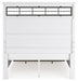 Details | B844B2: Includes panel headboard, storage footboard, rails and roll slats, Footboard made with hardwood solids, MDF substrates and butcher block oak veneer, Headboard and rails made with hardwood solids and MDF substrates, White finish, Headboard with inset black metal barn sash, 2 drawers in footboard with fully finished interior, dovetail construction and ball-bearing side glides, Pulls with matte black finish, Bed does not require a foundation/box spring, Mattress available, sold separately, Assembly required, B844B1: Includes dresser and mirror, Made with hardwood solids, MDF substrates and butcher block oak veneer, Dresser with 2-tone finish (white finish; butcher block oak veneer with natural finish), Pulls with matte black finish, 10 spacious drawers with fully finished interiors (top drawers felt lined), dovetail construction and ball-bearing side glides , Drawers with inset picture fronts, Mirror attaches to back of dresser, | |