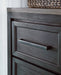 Details | B989B2: Includes queen panel headboard, storage footboard, and rails with roll slats, Made with hardwood solids, select oak veneers and engineered wood, Two-tone finish (brushed black and dusty grayish brown wood tone), Headboard with picture frame moulding, Footboard with two deep drawers, Smooth-gliding soft-close drawers with fully finished interiors and dovetail construction, Sleek drawer pulls with black finish, Bed does not require additional foundation/box spring; accommodates most zero clearance adjustable bases with the addition of a bunkie board, Mattress available, sold separately, Assembly required, B989B1: Includes dresser and mirror, Made with hardwood solids, select oak veneers and engineered wood, Two-tone finish (brushed black and dusty grayish brown wood tone), Sleek drawer pulls with black finish, 11 soft-close, smooth-gliding drawers with fully finished interiors and dovetail construction (top drawers felt lined), 5 drawers with brushed black finish; 6 drawers with grayish brown wood tone, 3 drawers located behind each door, Mirror mounts to back of dresser, Assembly required, B989-48: Made with hardwood solids, select oak veneers and engineered wood, Two-tone finish (brushed black and dusty grayish brown wood tone), Sleek drawer pulls with black finish, 5 soft-close, smooth-gliding drawers with fully finished interiors and dovetail construction (top drawers felt lined), 3 pull-out trays (felt lined) and 2 adjustable shelves behind door, | |