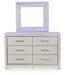 Zyniden Queen Upholstered Panel Bed with Mirrored Dresser and Chest