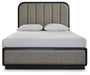 Rowanbeck Queen Upholstered Panel Bed with Mirrored Dresser and Chest