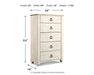 Willowton Five Drawer Chest | 34''W x 16''D x 53''H |