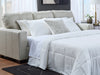 Details Corner-blocked frame, Attached back and loose seat cushions, High-quality foam cushions wrapped in poly fiber, 100% top grain leather covers inside areas such as the back, seat and arm cushions; skillfully matched faux leather covers the remaining areas, Due to its natural origin, real leather can show individual characteristics such as healed scars, growth marks, grain variation and shade variation, Natural variations make each hide unique and do not detract from the wearing qualities of leather, Exposed feet with faux wood finish, Included bi-fold queen memory foam mattress sits atop a supportive steel frame, Memory foam provides better airflow for a cooler night’s sleep, Memory foam encased in damask ticking