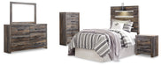 Drystan Twin Panel Headboard with Mirrored Dresser, Chest and Nightstand