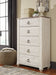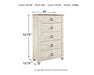 Details Made of engineered wood (MDF/particleboard) and decorative laminate, Whitewash replicated worn through paint with authentic touch, Replicated wood grained block pattern with authentic touch, Antiqued brass-tone ring-pull hardware, 5 smooth-gliding drawers, Safety is a top priority, clothing storage units are designed to meet the most current standard for stability, ASTM F 2057 (ASTM International), Drawers extend out to accommodate maximum access to drawer interior while maintaining safety, Assembly required